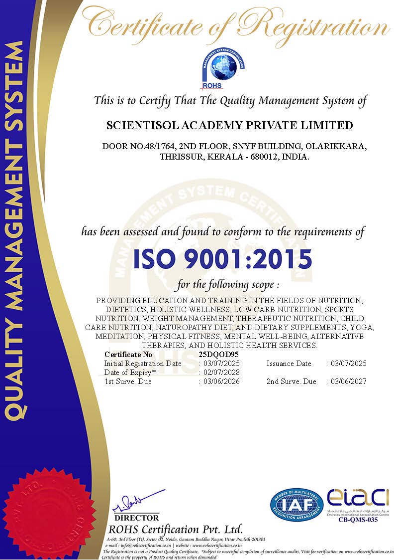 With a strong focus on quality, innovation, and accessibility, Scientisol Academy is shaping the next generation of certified nutritionists and wellness consultants — committed to making a difference in individual lives and public health outcomes.